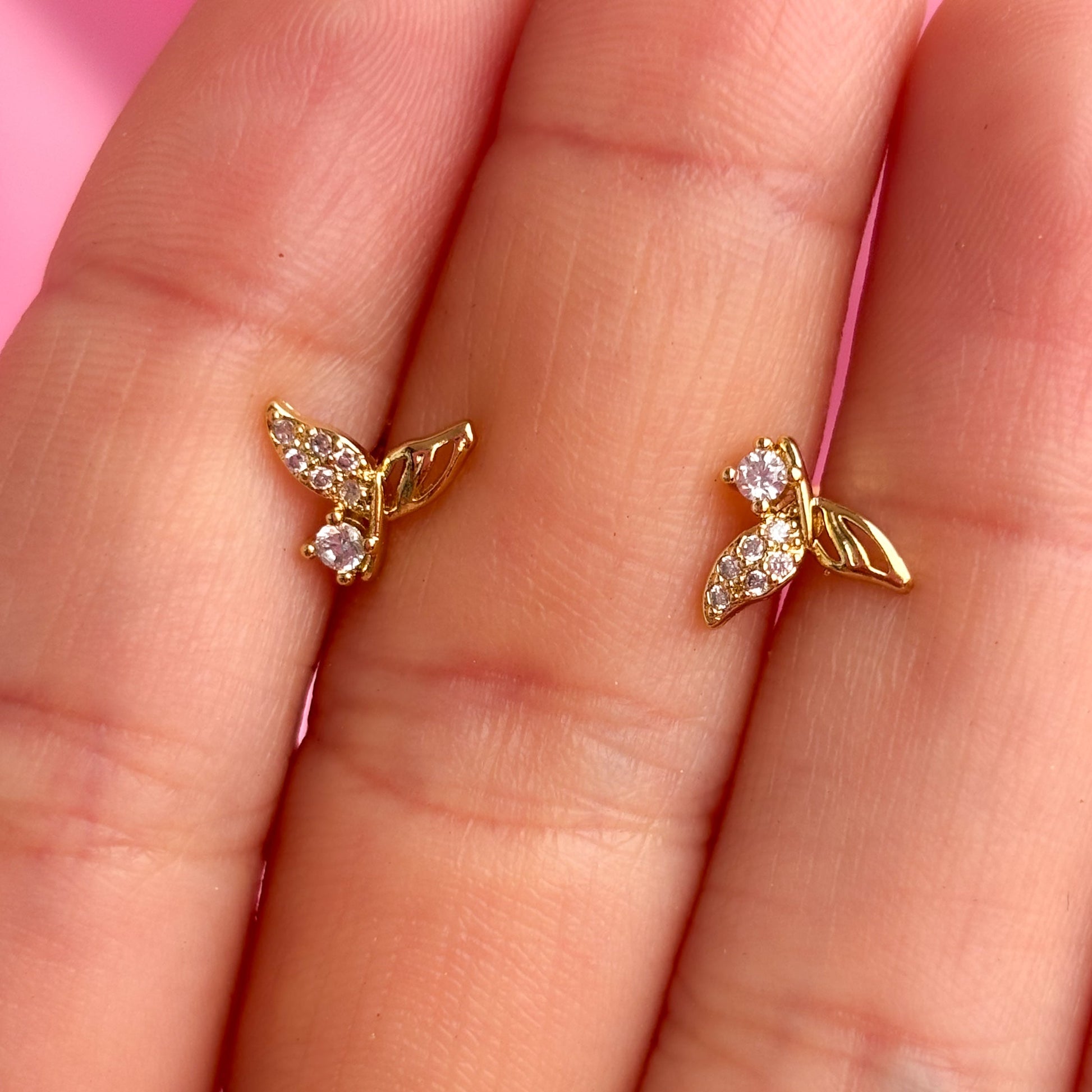 Broqueles preciosos e hipoalergénicos con bolita dormilona de oro laminado.
